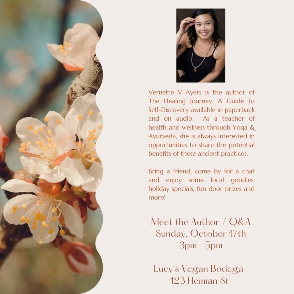 Join me for a Meet the Author / Q&A Event in the courtyard of Lucy’s Vegan Bodega next month! Bring a friend, bring your questions, enjoy some great local treats, holiday specials, door prizes and more!